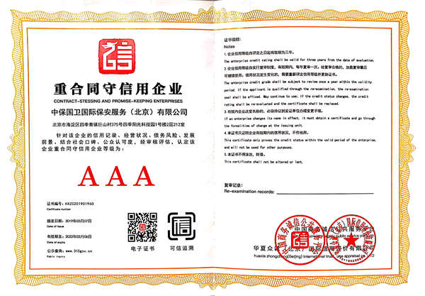 中保國衛(wèi)國際保安服務(wù)(北京)有限公司,屬中保國衛(wèi)集團旗下子公司。能全方位的為大型客戶提供優(yōu)質(zhì)的安保、押運服務(wù),是集人防和技防于一體的新型正規(guī)化綜合安保押運服務(wù)企業(yè),提供人防、物防、技防、聯(lián)網(wǎng)報*、非武裝押運等安防相關(guān)的一站式服務(wù)。